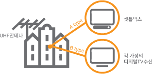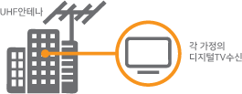 아파트나 연립주택등 공동주택에서 공시청 안테나설비(공시청수신설비)를 이용하여 방송전파를 수신하는 형태입니다.