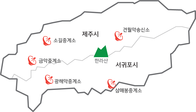| 금악 중계소 | DTV | CH 6-1(48) | 20W |